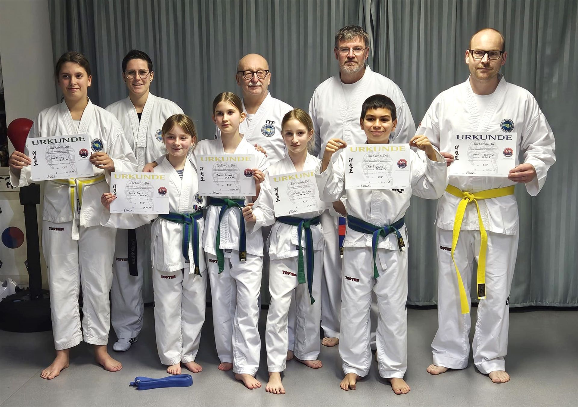 Zum 6. Kup (grüner Gürtel) Marina Eckert, Isabella Malena, Yusuf Cizme, Vasily Schmidt.