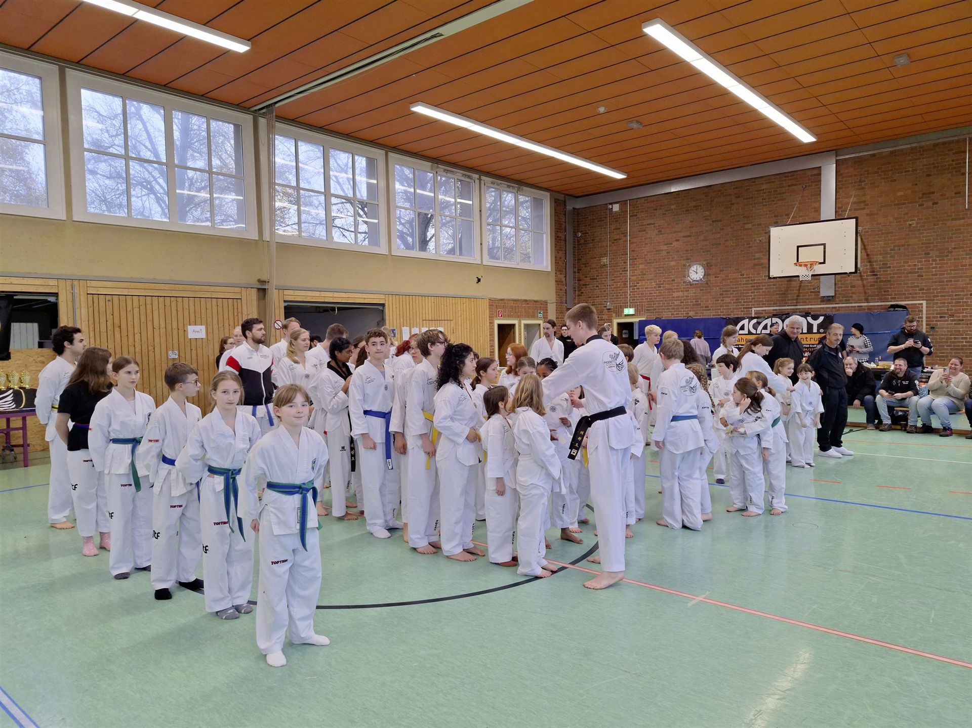 Nach über 2 Stunden, in denen die Schüler alle Taekwon Do Disziplinen vorführen mussten, konnten die Prüfer allen die Urkunden für den nächsten Gürtel unterzeichnen und überreichen.