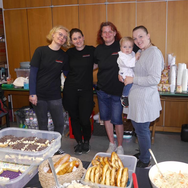 Foto 3 zeigt V.L. Celine,Janet,und Leyla mit dem Free-Fight Referent Ralf Seeger.