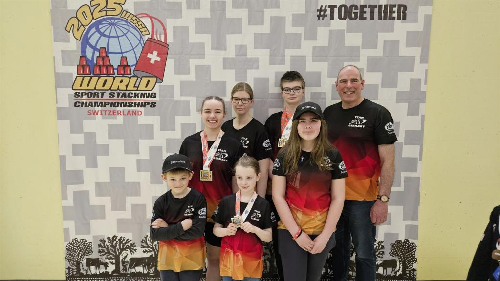 Zur Siegerehrung kam auch ihr Vater und Trainer Jörg Schilcher mit auf die Bühne. Er nutzte die Gelegenheit, darauf hinzuweisen, dass die Abteilung Sport-Stacking im MTV Boffzen im nächsten Jahr schon 15 Jahre alt wird. „Wir freuen uns sehr, dass wir am Wochenende 14./15. März 2026 die Deutsche Meisterschaft in Boffzen ausrichten dürfen“, lud er die Gäste ein, sich bei dieser Gelegenheit einen guten Einblick in diese rasante Sportart zu verschaffen. Am 7. Februar wird eine Schiedsrichterschulung durchgeführt und am 8. Februar richten die speedy cUP!s nun schon zum zehnten Mal den Boffzer WesercUP aus.