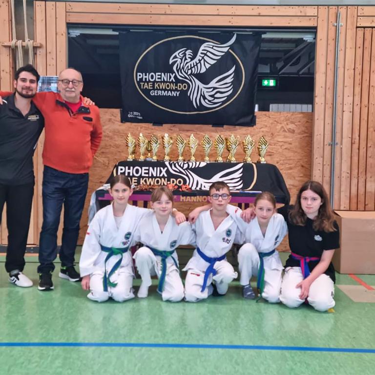 MTV-Trainer Günter Potthast zeigte sich sehr zufrieden mit der Ausbeute seiner Schützlinge beim erstmals durchgeführten Turnier des befreundeten Taekwondo-Vereins Phoenix Göttingen. In der Sporthalle der Brüder-Grimm-Schule in Göttingen stritten die Teilnehmenden unter dem Motto „Phoenix Invitational 1st Edition“ in den Kampfdisziplinen Semi- und Leichtkontakt sowie im Formenlauf Einzel und Team um die Platzierungen.