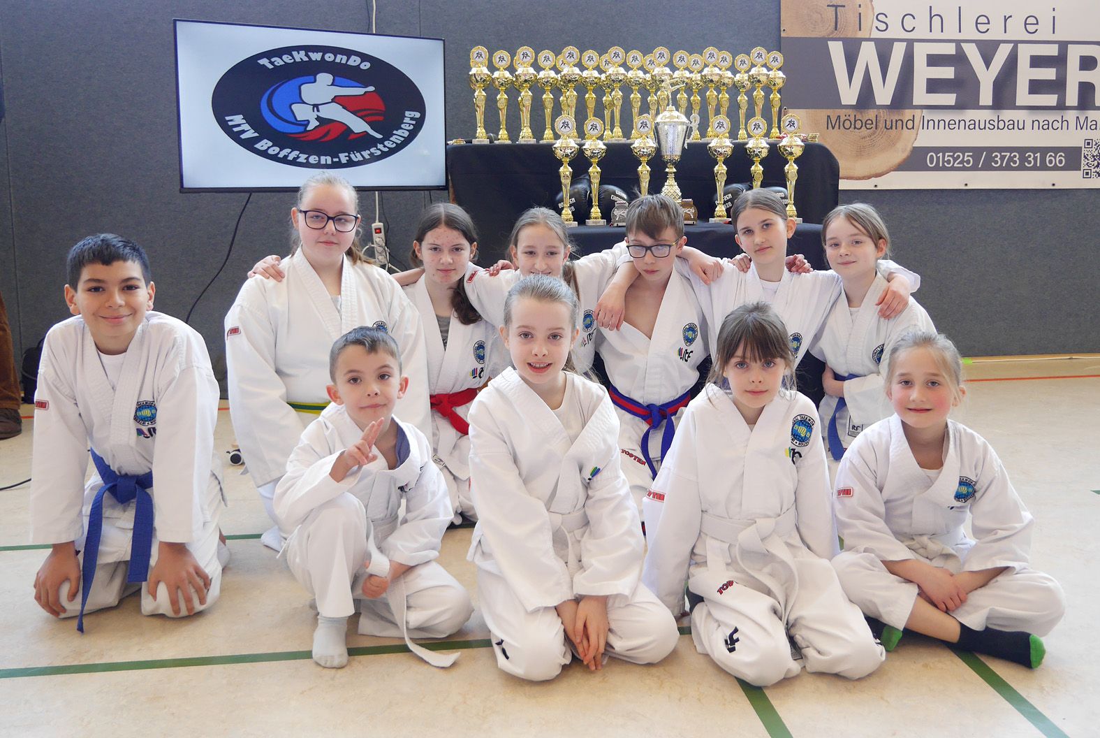 Beim Fototermin vor dem Turnierbeginn herrschte eine gewisse Anspannung, feierten doch einige Sportlerinnen und Sportler der Taekwondo Kampfgemeinschaft Boffzen-Fürstenberg bei der Weserbergland Meisterschaft ihre Premiere.