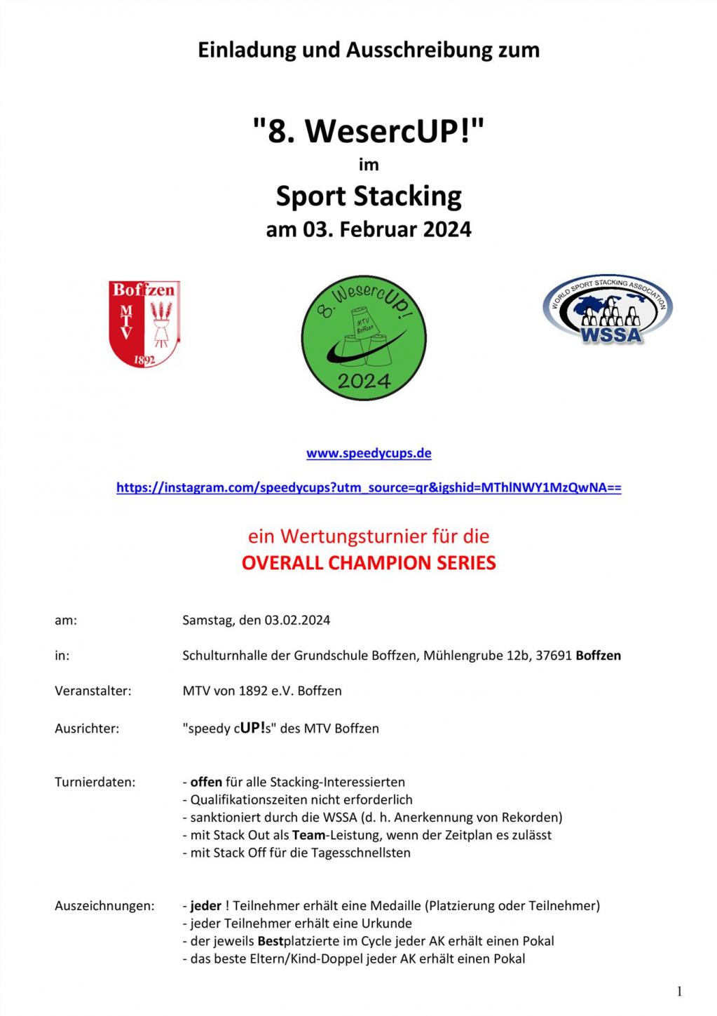 Die Deutschen Meisterschaften im Sport Stacking werden am 7. + 8. März 2020 wieder vom MTV Boffzen Team ausgerichtet.
